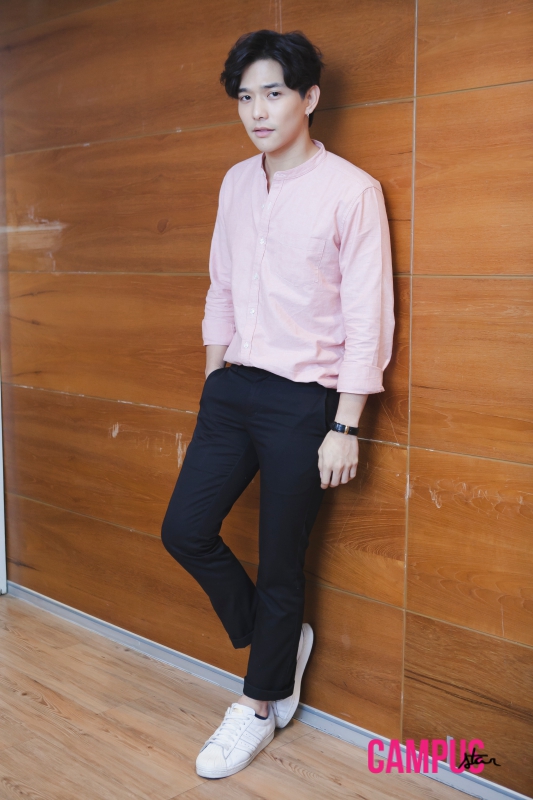 ซึ่งก็เป็นช่วงที่เราเข้ามาประกวดของค่ายพอดี ปกติผมเป็นคนแคสงานมาตั้งแต่ม.ต้น แล้วไม่เคยได้ แต่ไม่ได้อยากเป็นดารานะ แค่ต้องการหาเงินไปซื้อกีต้าร์หรือใช้จ่ายในชีวิตประจำวันเฉยๆ โดยไม่ต้องขอเงินพ่อแม่ แล้วก็คิดว่า ครั้งนี้ครั้งสุดท้าย ถ้าไม่ได้ก็พอแล้ว ผมก็ต้องเอาทางเดินชีวิตคนปกติแล้ว สุดท้ายก็เข้ามาได้ คือไม่ได้เตรียมตัวอะไรเลย แค่เป็นตัวของตัวเอง เพราะผมก็เป็นคนกวนๆ อยู่แล้ว แล้วเราเล่นดนตรีกลางคืนก็กล้าพูด กล้าโต้เถียง ตอนนั้นก็โชว์ดนตรีในวันประกวดเป็นการปล่อยตัวตนของผมออกมา