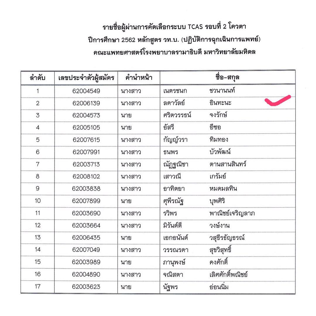 โดยน้องแพรวสามารถสอบผ่านการคัดเลือกในระบบ TCAS62 รอบที่ 2 โควตา ในหลักสูตรปฏิบัติการฉุกเฉินการแพทย์ คณะแพทยศาสตร์โรงพยาบาลรามาธิบดี มหาวิทยาลัยมหิดล และนอกจากนี้น้องแพรวยังสอบติดคณะวิทยาศาสตร์ มหาวิทยาลัยมหิดล อีกด้วย แคมปัส-สตาร์ ขอแสดงความยินดีด้วยนะคะ เก่งสุดยอดไปเลย