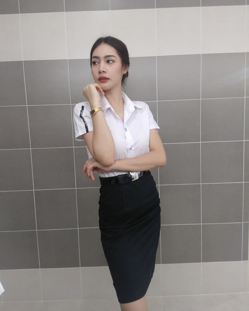 น้องเจนนี่ในลุคนักศึกษาสาขาวิชาธุรกิจการบิน โรงเรียนการท่องเที่ยวและการบริการ ม.สวนดุสิต