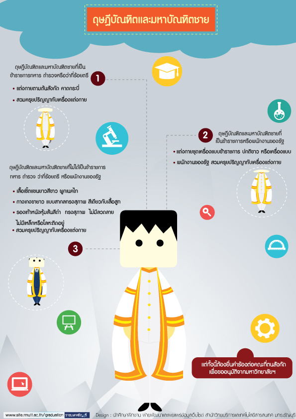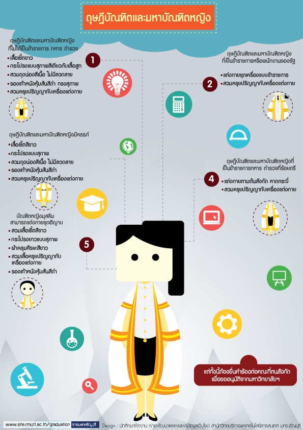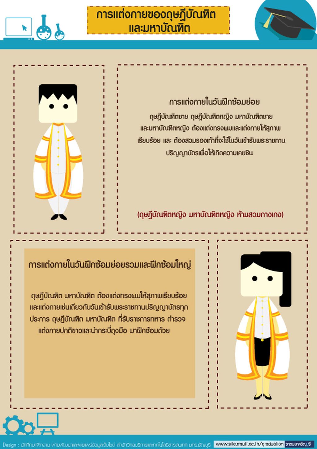 สำหรับน้องๆ นักศึกษาแห่งรั้วมหาวิทยาลัยเทคราชมงคล ทุกวิทยาเขต ที่กำลังจะจบการศึกษาและได้เป็นบัณฑิตเต็มตัว อีกหนึ่งสิ่งที่ต้องเตรียมตัวกันก็คือการเข้าพิธีรับพระราชทานปริญญาบัตร ซึ่งก็จะต้องมีทั้งวันซ้อมย่อย วันซ้อมใหญ่ และวันรับจริง ในบทความนี้ แคมปัส-สตาร์ มีรายละเอียดเกี่ยวกับการแต่งกายมาฝาก ทั้งของดุษฎีบัณฑิตและมหาบัณฑิต ไปอ่านทำความเข้าใจกันไว้แต่เนิ่นๆ ถึงเวลาจริงๆ จะได้มีความพร้อมนะคะ ..