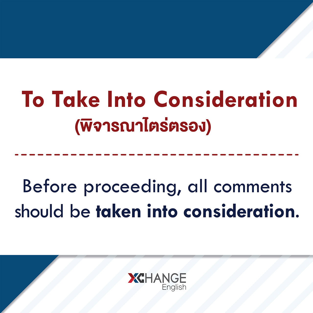 10. to take into consideration (พิจารณาไตร่ตรอง)