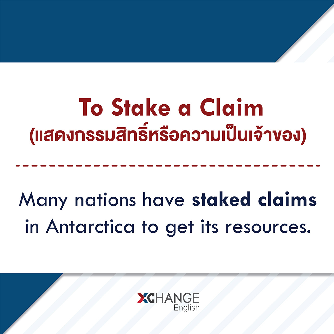 9. to stake a claim (แสดงกรรมสิทธิ์หรือความเป็นเจ้าของ)