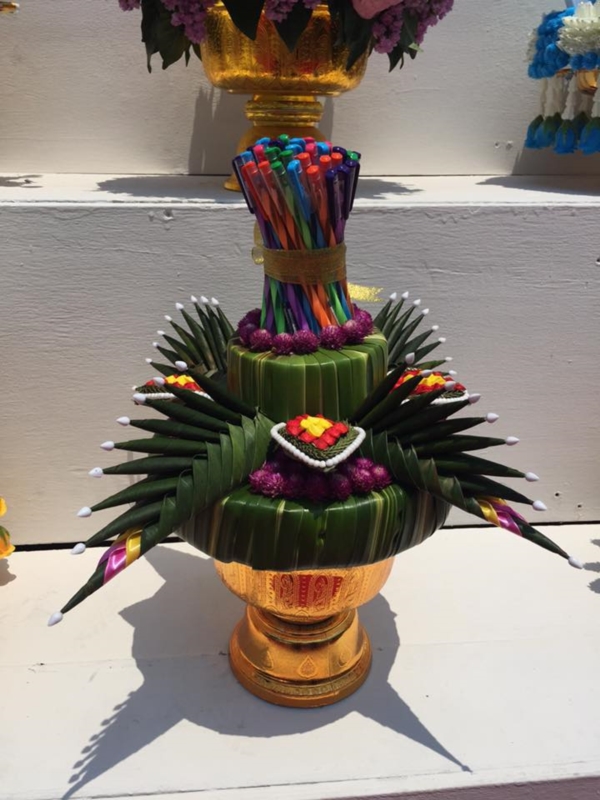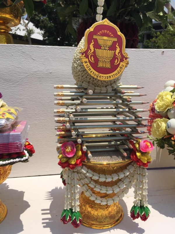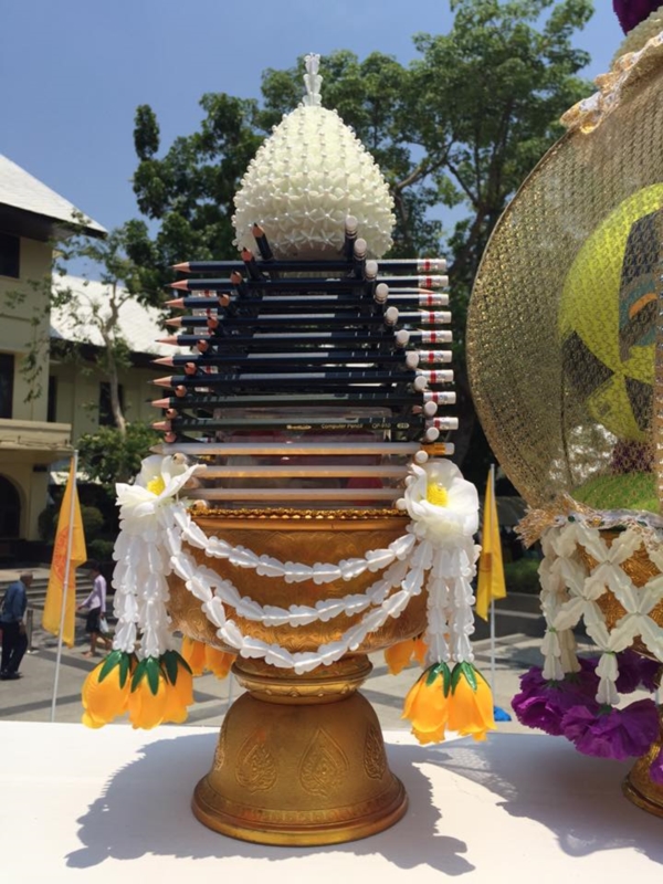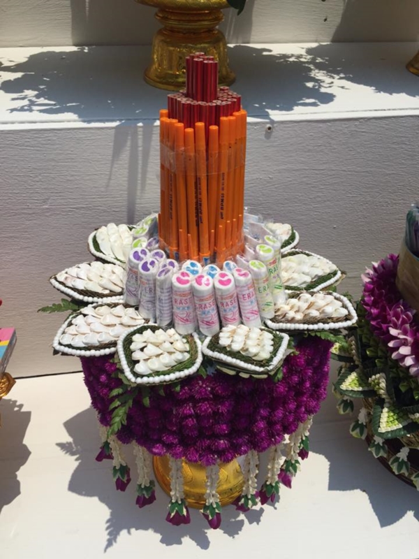 เนื่องจากวันที่ 11 พ.ค. เป็นวันปรีดี พนมยงค์ ทางมหาวิทยาลัยธรรมศาสตร์จะมีการเชิญชวนให้หน่วยงานต่างๆ ทั้งในและนอกมหาลัยจัดทำพานพุ่ม แต่ในปีนี้ถือว่าเป็นปีที่ได้มีแนวคิดเปลี่ยนพานพุ่มดอกไม้มาเป็นพานพุ่มที่สามารถนำไปใช้ประโยชน์ต่อได้ ซึ่งก็มีหน่วยงานต่างๆ ได้ร่วมทำพานพุ่มไอเดียที่น่าสนใจมากมาย อาทิ พานพุ่มปากกาพานพุ่มดินสอ พานพุ่มเครื่องเขียน พานพุ่มนาฬิกา พานพุ่มดิกชันนารี พานพุ่มลูกปิงปอง พานพุ่มตะกร้อ พานพุ่มฟุตบอล ฯลฯ นับว่าเป็นไอเดียที่ดี และสร้างสรรค์มากๆ เลยนะคะ น้องๆ จะดูเป็นไอเดียไว้ทำพานไหว้ครูก็ได้น้าาา ลองไปชมภาพกันค่ะ – พานพุ่มดอกไม้วันปรีดี –