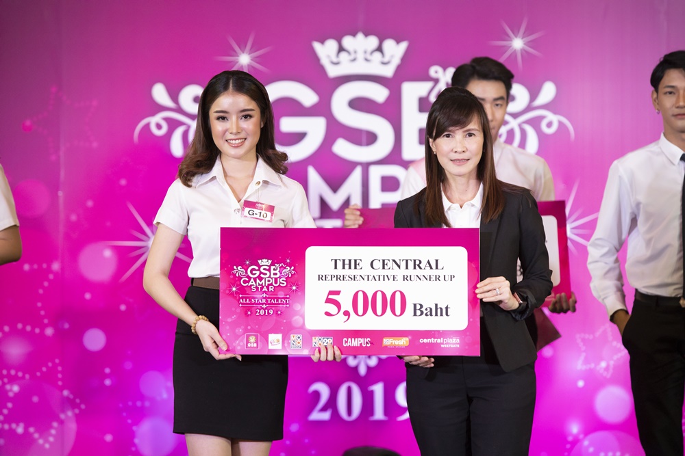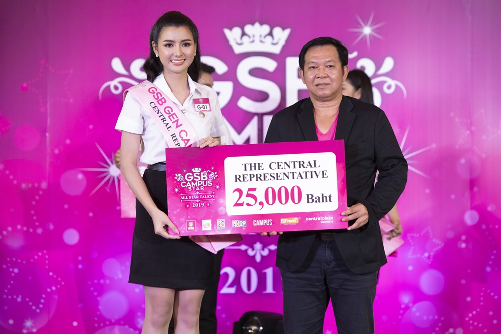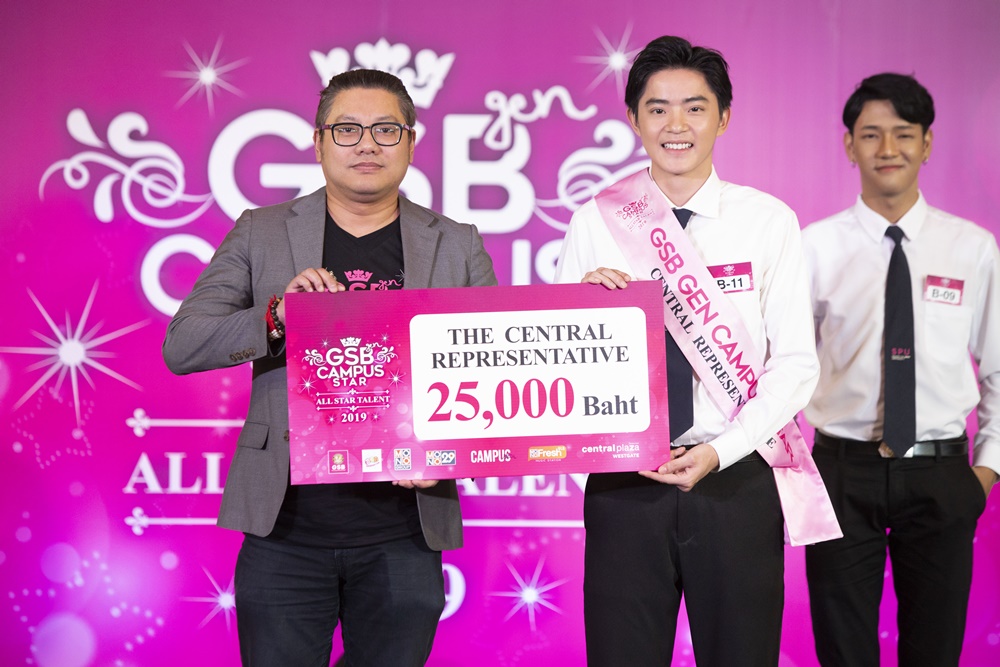 สำหรับผู้ชนะตัวแทนภาคกลางทั้ง 4 คน (ชาย 2 หญิง 2) จะได้รับรางวัลทุนการศึกษาคนละ 25,000 บาท พร้อมกับเป็นตัวแทนภาคเข้าร่วมกับการประกวด GSB GEN CAMPUS STAR 2019 – All Star Talant ระดับประเทศ ที่จะจัดขึ้นในวันที่ 2 พฤศจิกายน 2562 ณ ศูนย์การค้า เซ็นทรัล เวิลด์