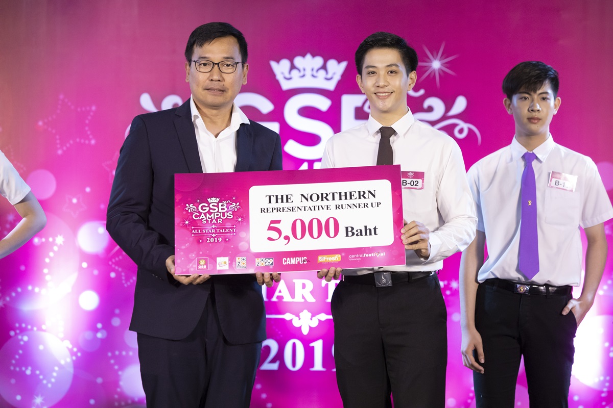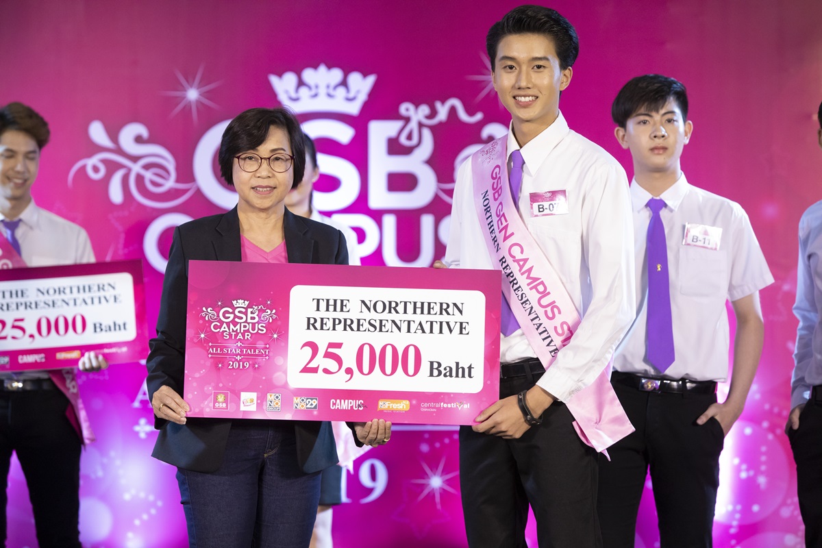 โดยผู้ชนะตัวแทนภาคเหนือทั้ง 4 คน (ชาย 2 หญิง 2) จะได้รับรางวัลทุนการศึกษาคนละ 25,000 บาท พร้อมกับเป็นตัวแทนภาคเข้าร่วมกับการประกวด GSB GEN CAMPUS STAR 2019 – All Star Talant ระดับประเทศ ที่จะจัดขึ้นในวันที่ 2 พฤศจิกายน 2562 ณ ศูนย์การค้า เซ็นทรัล เวิลด์