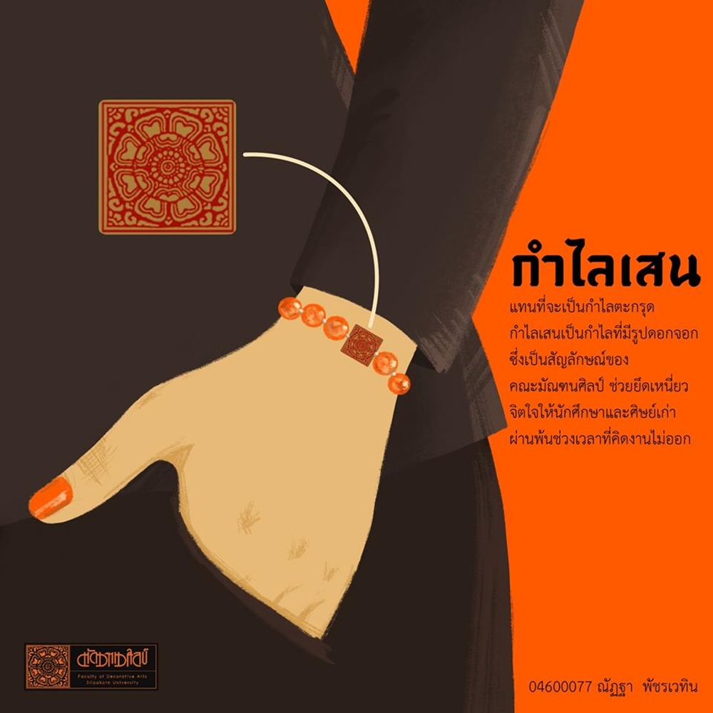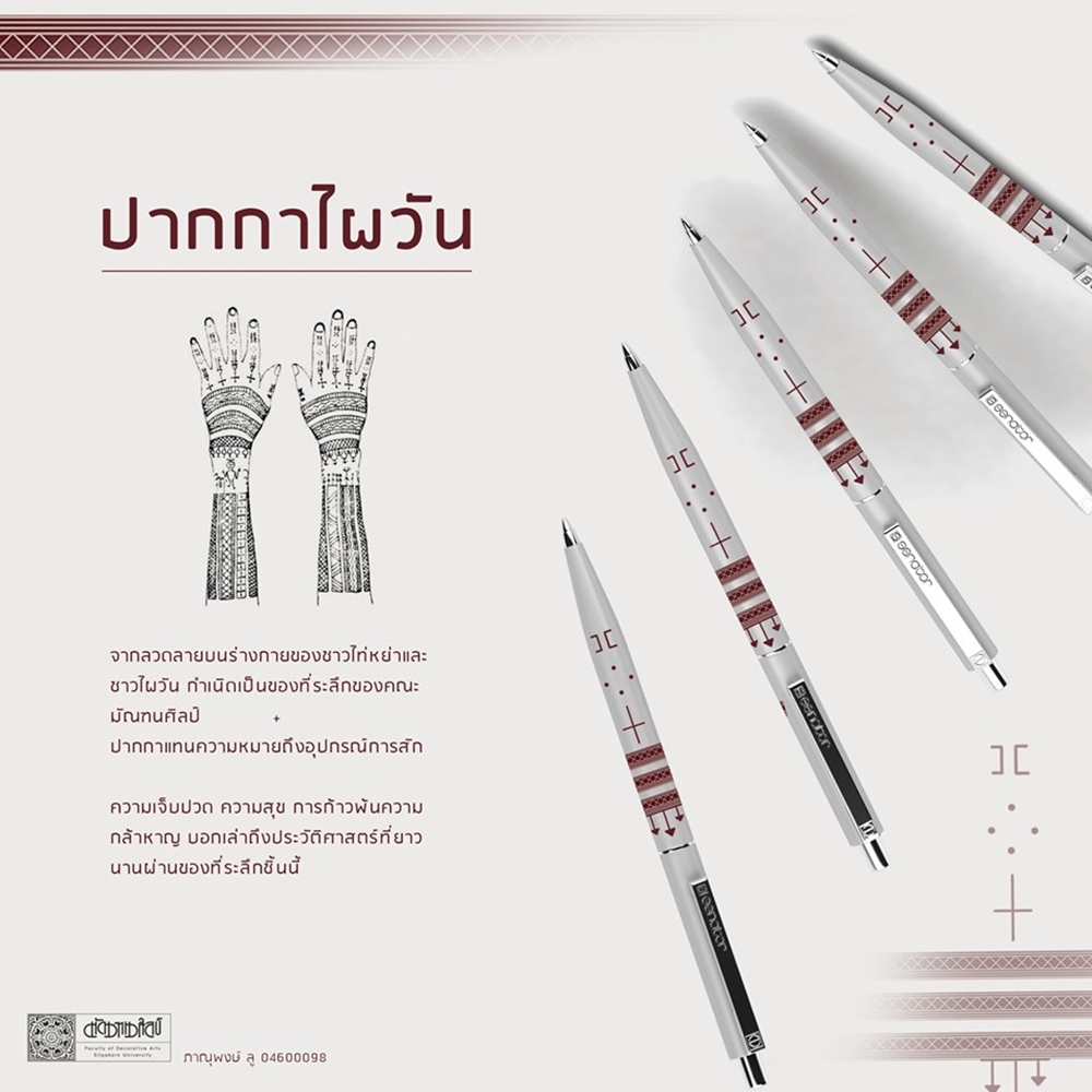 สินค้าจำลองออกแบบของที่ระลึกคณะมัณฑนศิลป์ ที่แสดงเอกลักษณ์แบบไทย ๆ ต่อไปนี้เป็นผลงานนักศึกษาชั้นปีที่ 3 ภาควิชาการออกแบบนิเทศศิลป์ คณะมัณฑนศิลป์ มหาวิทยาลัยศิลปากร (Visual Communication art Silpakorn) ปีการศึกษา 2562 แรงบันดาลใจจากนิทรรศการ “ถอดรหัสไทย” ที่มิวเซียมสยาม @museum siam อีกทั้งยังเป็นผลงานที่เป็นหนึ่งในวิชา Comparative Art History For Visual Communication Design สอนโดย อ.ดร. ไพโรจน์ พิทยเมธี