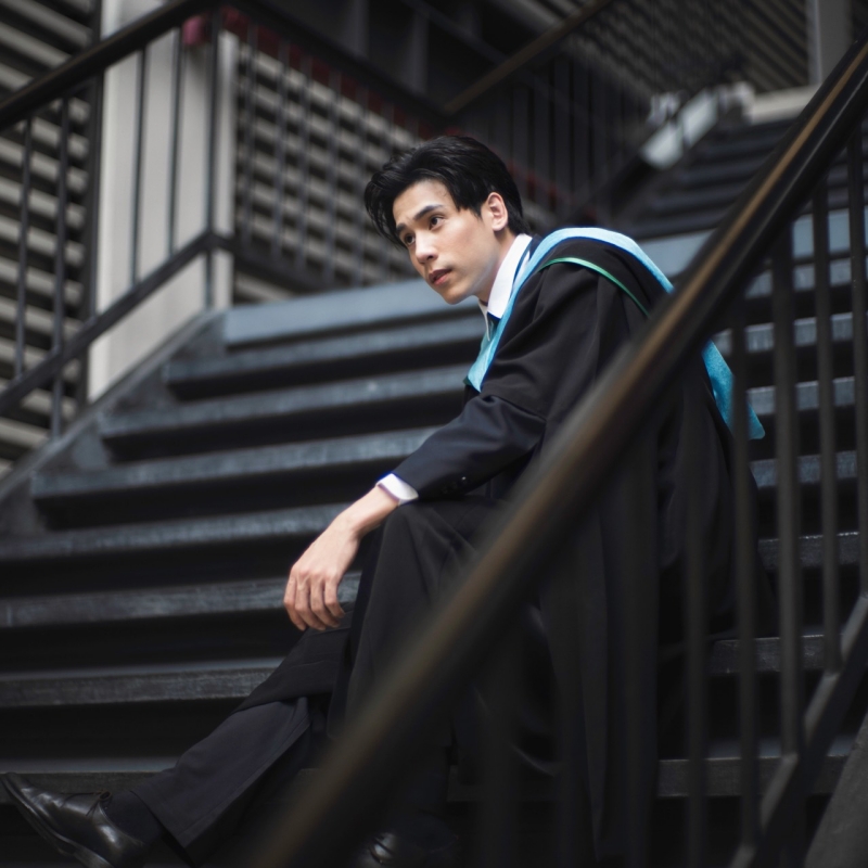 จบปริญญาตรีใหม่ๆ ผมรู้สึก เฮ้ย จบแล้ว ได้ทำงานเต็มที่ แต่เพิ่งมาคิดได้ว่าจริงๆ การเรียนมันสำคัญ ทำให้คุณพัฒนาสมองตัวเอง เลยเลือกเรียนปริญญาโทต่อ เป็นการเงินประยุกต์ ถึงไม่ได้ทำงานด้านการเงิน ทำงานด้านละคร แต่มันก็ทำให้เราวิเคราะห์สิ่งต่างๆ ได้ง่ายขึ้น เอาความรู้มาบวกกับประสบการณ์