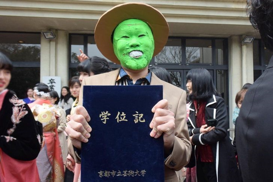 ม.ศิลปะเกียวโต (Kyoto City University of Arts) ที่ประเทศญี่ปุ่น เปิดกว้างให้เหล่าบัณฑิตแต่งกายได้แบบในอยากที่ตนเองต้องการจะแต่ง เข้าร่วมในพิธีสำเร็จการศึกษา โดยในทุก ๆ ปี จะได้เห็นเหล่าบัณฑิตใหม่ป้ายแดงปล่อยของ สร้างสรรค์ไอเดียใส่ชุดแฟนตาซีกันแบบจัดเต็ม!!บ้างก็แต่งกายเป็นคาแรคเตอร์ตัวการ์ตูนดัง คาแรคเตอร์นักแสดงดัง อีกทั้งบางคนยังมีพร็อพประกอบการแต่งกายติดขึ้นไปด้วย โดยภาพต่อไปนี้ที่ทุกคนจะได้เห็นนั้นเป็นภาพของเหล่าบัณฑิตจากคณะวิจิตรศิลป์ และคณะวิทยาศาสตร์การดนตรี