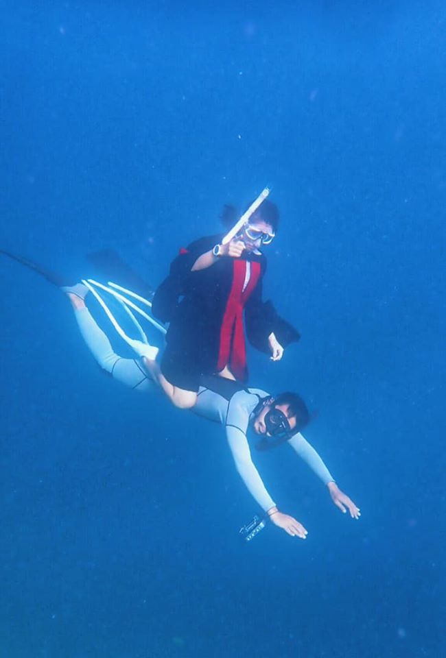 และยังได้มีการแนะหากใครอยากจะทำตามจะต้องมีการเรียนดำน้ำก่อน เพื่อความปลอดภัยอีกด้วย “เห็นคนแชร์เยอะแนะนำว่าอย่าไปทำเองนะคะ แบบนี้เรียกว่า Freedive ต้องเรียนกันก่อนนะ แต่ก็ไม่ยาก ถ้าอยากลงแบบนี้ เรียนกันได้ที่ GOFer Freediver APNEA Thailand – Freediving School / ถ่ายภาพโดย Tanawat Visetnarakul”