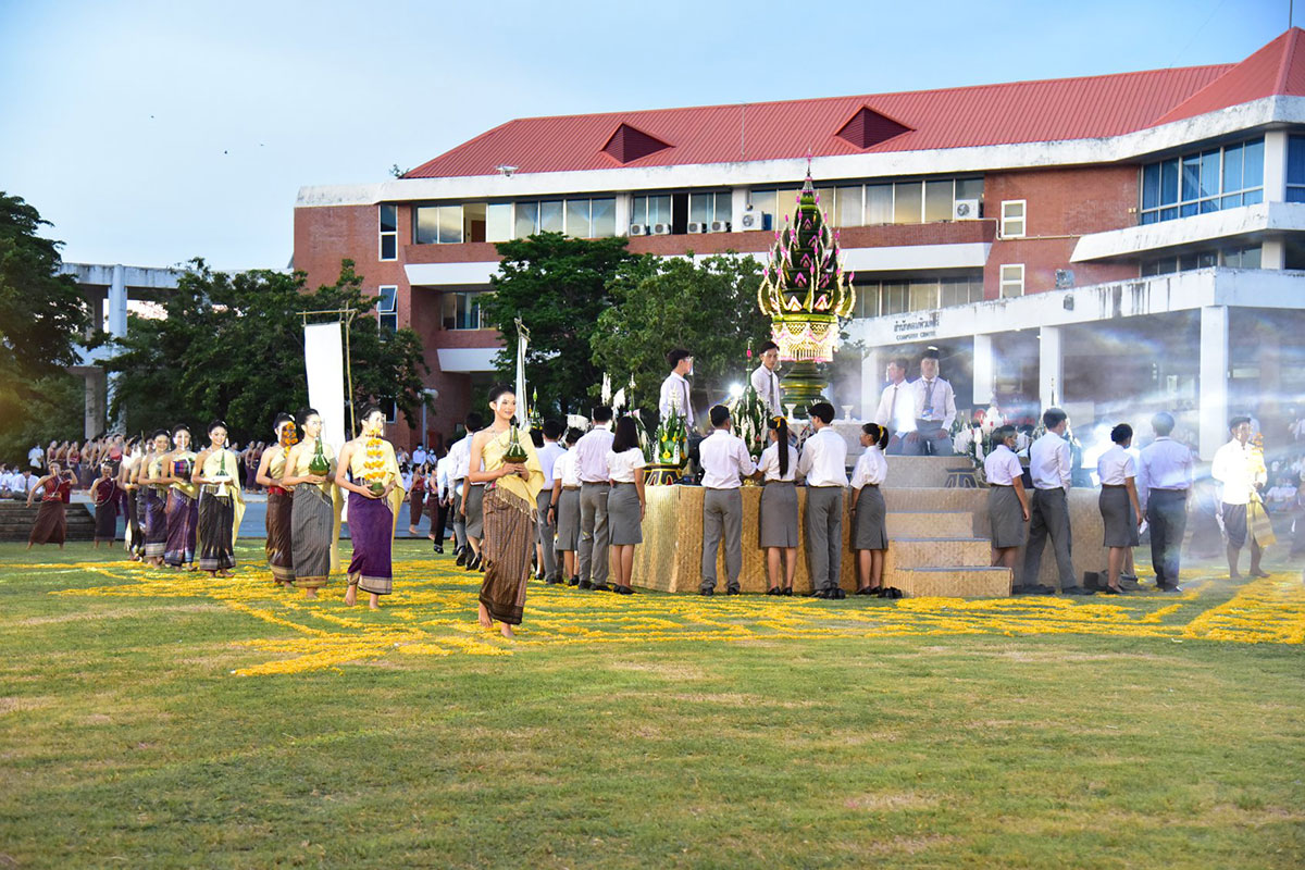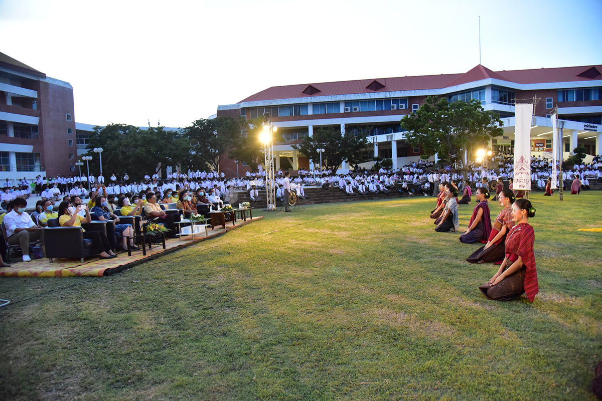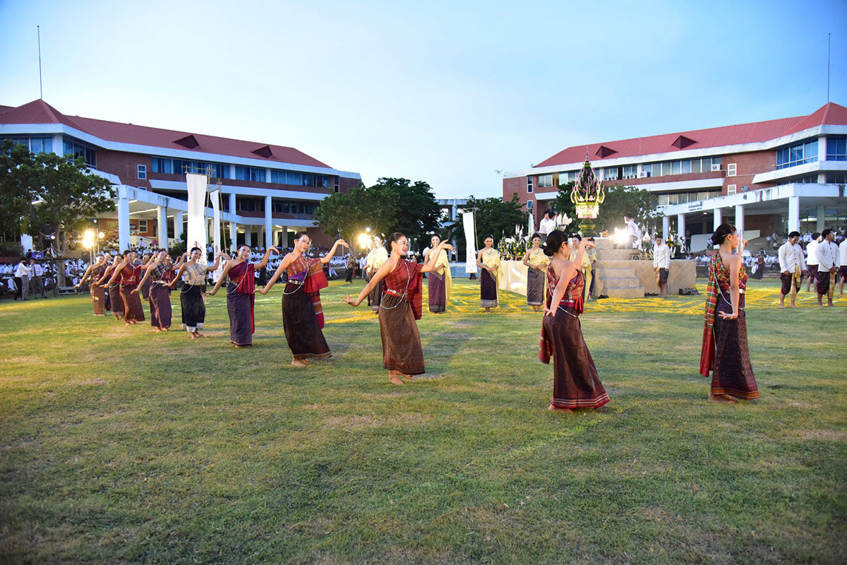 โดยกิจกรรมในวันนี้ สโมสรนิสิตทุกคณะ/วิทยาลัย ได้นํานิสิตใหม่เข้าสู่บริเวณลานอัฐศิลป์ มีขบวนอัญเชิญตราโรจนากร ขบวนอันเชิญพระพุทธกันทรวิชัยอภิสมัยธรรมนายก ขบวนอัญเชิญบายศรีและเครื่องคาย ขบวนนางรําเข้าสู่บริเวณพิธี ชมการแสดงจากนิสิตคณะศิลปกรรมศาสตร์ บรรเลงดนตรีพื้นบ้านโดยวิทยาลัยดุริยางคศิลป์ และอาจารย์มีฤทธิ์ ปัญญาวงศ์ ศิลปินพื้นบ้านอีสาน เป็นผู้ปฏิบัติหน้าที่พราหมณ์บายศรีสู่ขวัญ