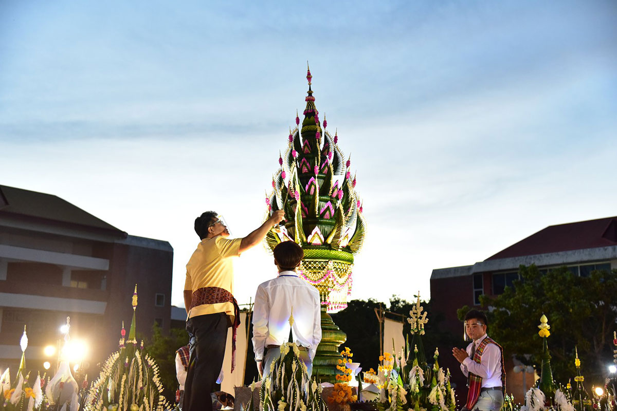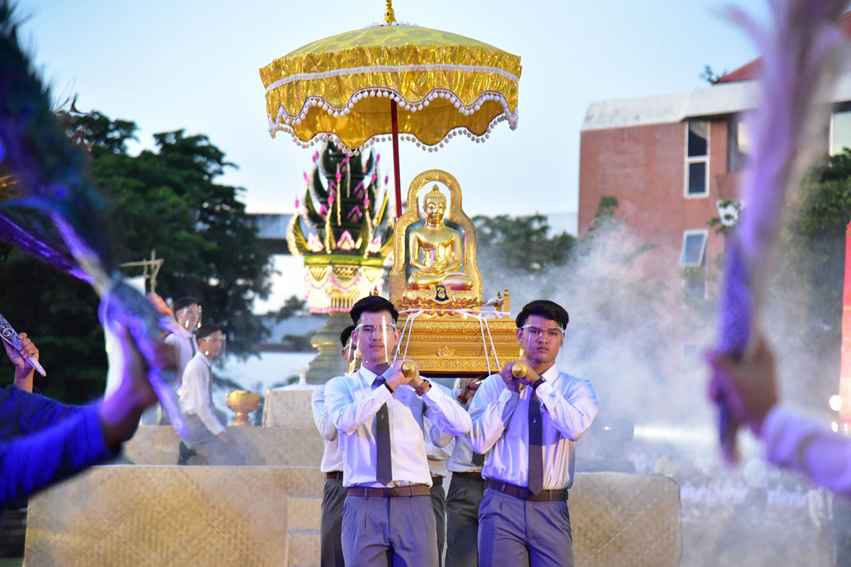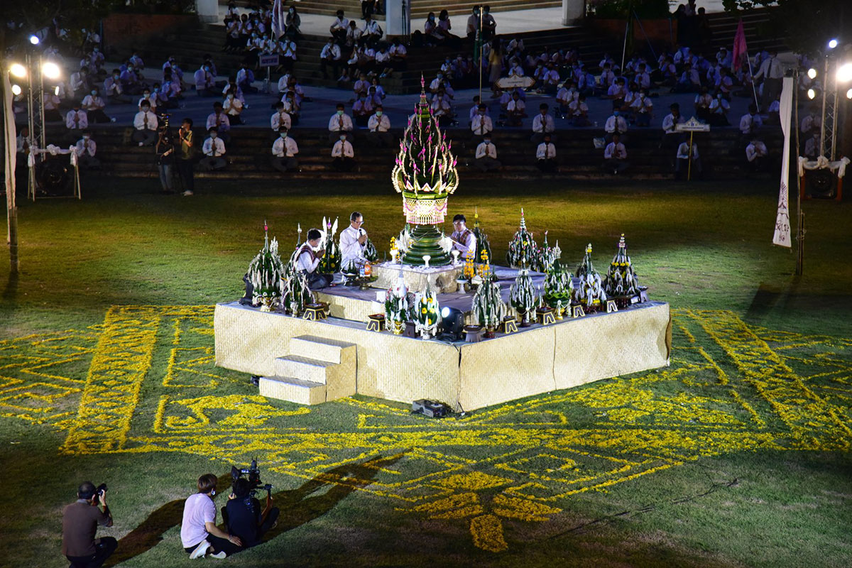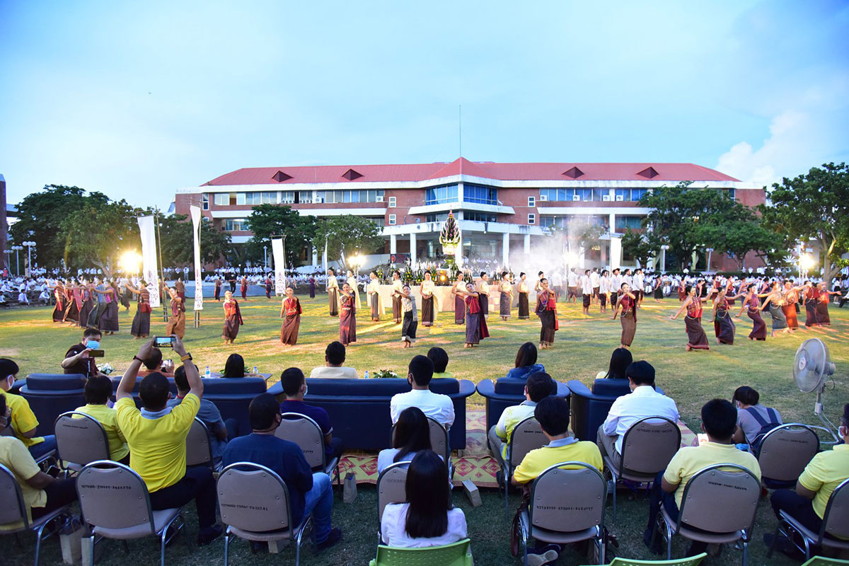 โดยกิจกรรมในวันนี้ สโมสรนิสิตทุกคณะ/วิทยาลัย ได้นํานิสิตใหม่เข้าสู่บริเวณลานอัฐศิลป์ มีขบวนอัญเชิญตราโรจนากร ขบวนอันเชิญพระพุทธกันทรวิชัยอภิสมัยธรรมนายก ขบวนอัญเชิญบายศรีและเครื่องคาย ขบวนนางรําเข้าสู่บริเวณพิธี ชมการแสดงจากนิสิตคณะศิลปกรรมศาสตร์ บรรเลงดนตรีพื้นบ้านโดยวิทยาลัยดุริยางคศิลป์ และอาจารย์มีฤทธิ์ ปัญญาวงศ์ ศิลปินพื้นบ้านอีสาน เป็นผู้ปฏิบัติหน้าที่พราหมณ์บายศรีสู่ขวัญ