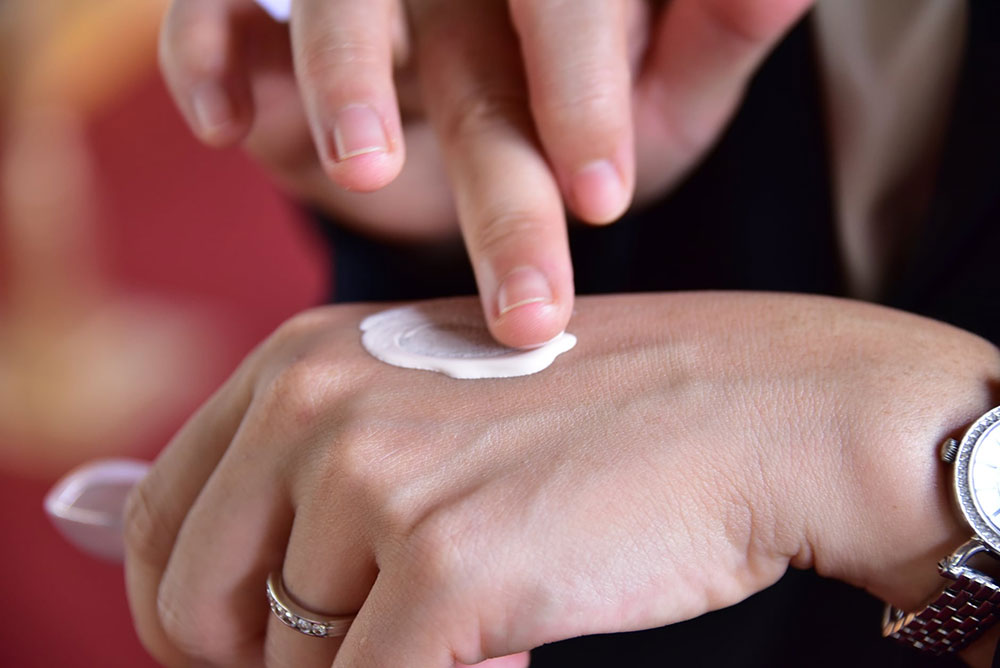 ครีมกันแดดโปรตีนไหมสีชมพู