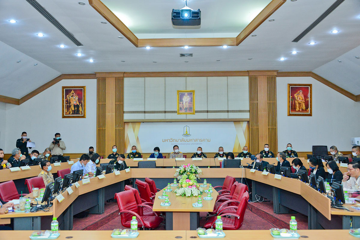 จากนั้น ผู้แทนสำนักพระราชวังและหัวหน้าส่วนราชการ หลายหน่วยงานได้ร่วมประชุม ณ ห้องประชุม 1 ชั้น 4 อาคารบรมราชกุมารี มหาวิทยาลัยมหาสารคาม เพื่อหารือการเตรียมพร้อมการจัดงาน ทั้งด้านสถานที่ การอำนวยความสะดวกต่างๆ มาตรการแนวทางป้องกันเชื้อไวรัส COVID-19