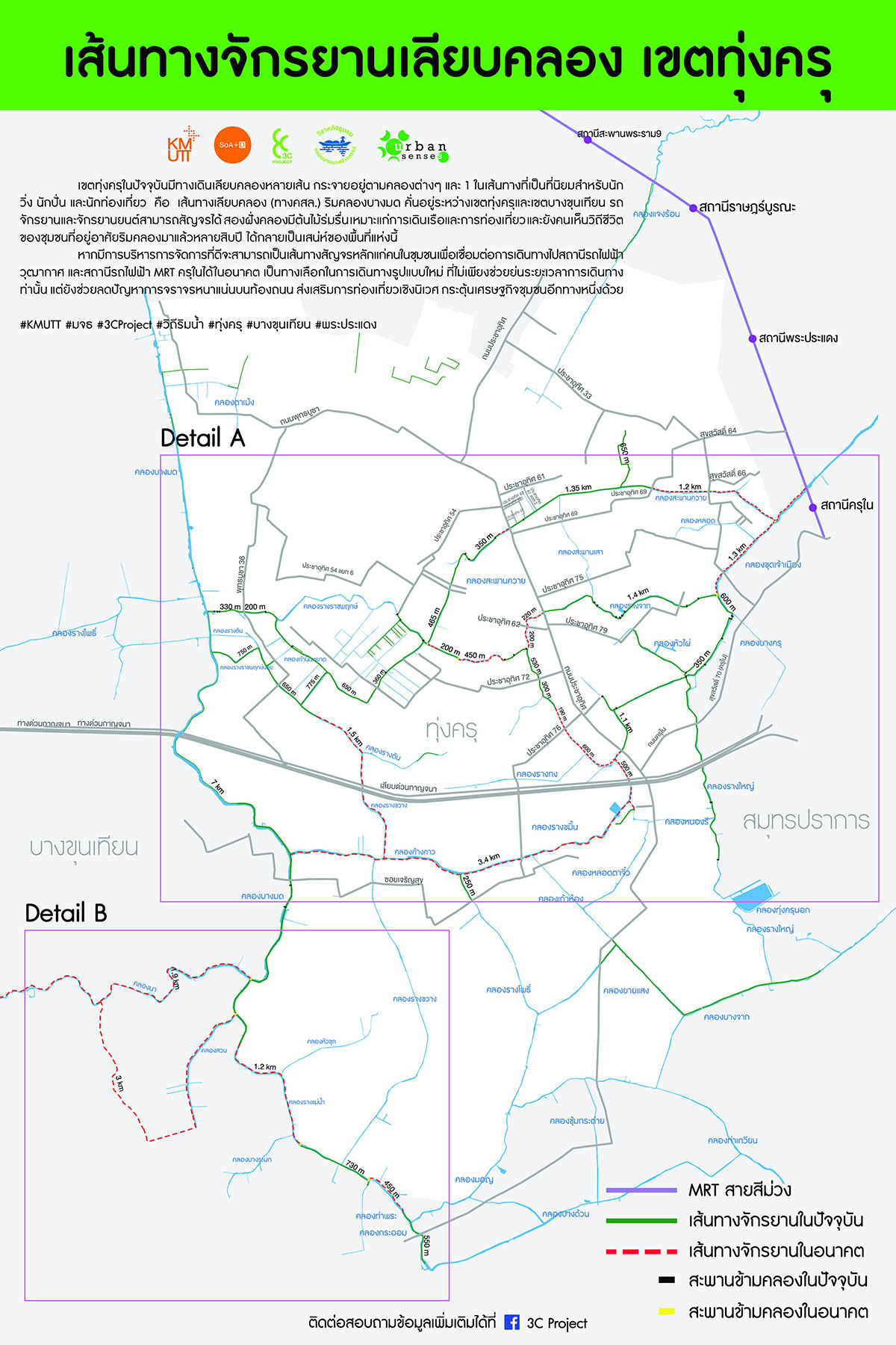 ดร.กัญจนีย์ กล่าวเสริมว่า “หากเขตทุ่งครุ ทำจักรยานเลียบคลองต่ออีก 2 กิโลเมตรได้จริง จะสามารถทำให้ปั่นจักรยานจากฝั่งคลองบางมดไปถึง MRT ใหม่ของเขตได้ ซึ่งในเขตมีทางเลียบคลองอยู่บางส่วนแล้ว ปัจจุบันขาดอีกประมาณ 2 กิโลเมตร ถ้าเชื่อม 2 กิโลเมตรนี้ได้ ก็จะสามารถปั่นจักรยานหรือขี่มอเตอร์ไซค์ไปขึ้น MRT จากอีกด้านหนึ่งได้ คล้ายการวางแผนผังเส้นทางย่านฝั่งธนฯ ล่วงหน้า”