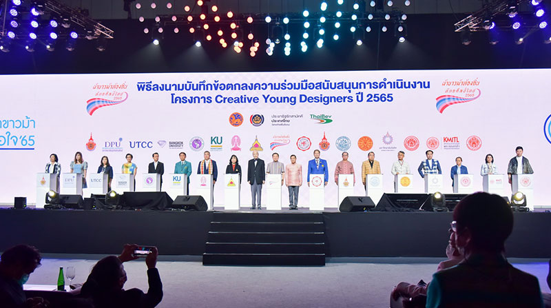 นายปรัชญา กล่าวต่อว่าโครงการ Creative Young Designer มีการดำเนินการมาแล้ว 3 ปี ซึ่งก่อนจะเข้าร่วมโครงการนั้น ทางคณะศิลปกรรมศาสตร์ มธบ. ได้มีโครงการให้นักศึกษาลงพื้นที่ในชุมชนต่างๆ เพื่อร่วมออกแบบ ยกระดับผลิตภัณฑ์ผ้าในชุมชนอยู่แล้ว อย่าง การออกแบบผ้าขาวม้าของชุมชนที่ จ.หนองบัวลำภู