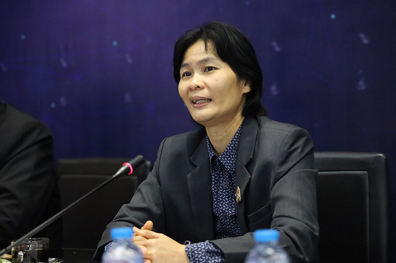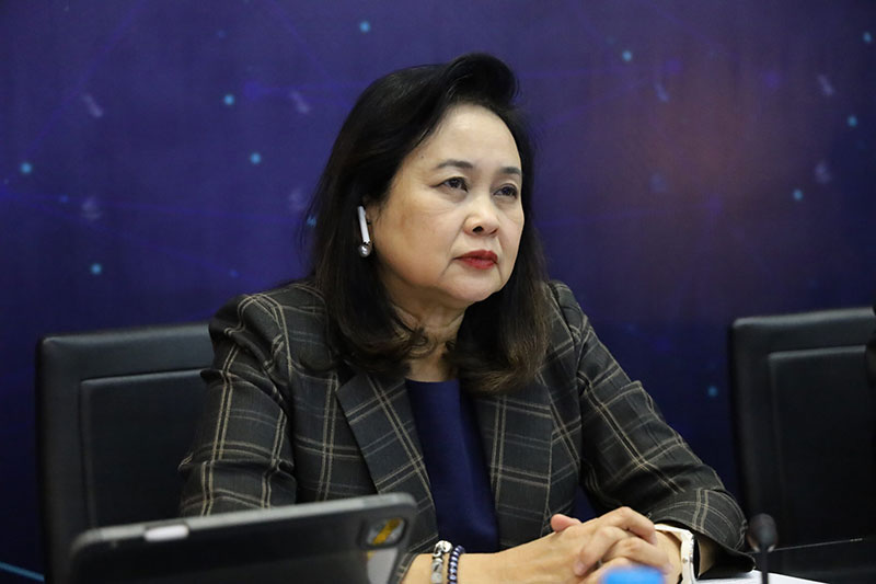 ศาตราจารย์ศันสนีย์ ไชยโรจน์ ประธานคณะอนุกรรมการ แผนงานกลุ่มสุขภาพและการแพทย์ หน่วยบริหารและจัดการทุน ด้านการเพิ่มความสามารถในการแข่งขันของประเทศ (บพข.) ร่วมแถลงข่าว ณ ห้องประชุมสารสิน ชั้น 2 อาคารสิริคุณากร มหาวิทยาลัยขอนแก่น