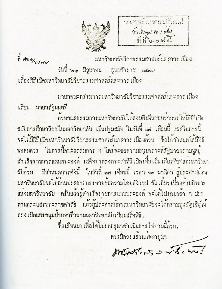 82 ปี ธรรมศาสตร์ เผยภาพชุดประวัติศาสตร์ จดหมาย-ลายมือบุคคลสำคัญ