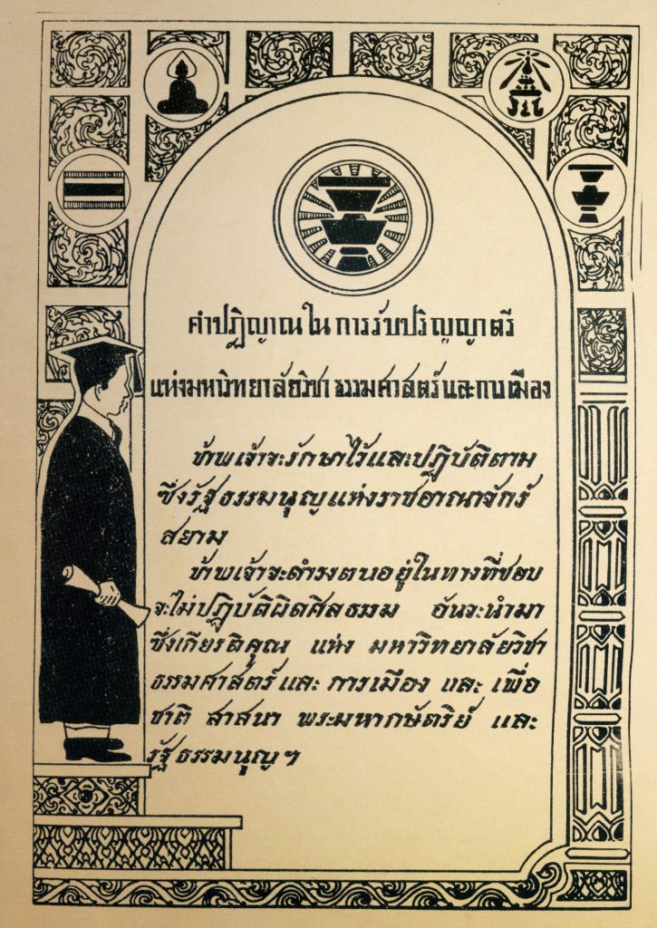 คำปฏิญานในการรับปริญญาตรีแห่งมหาวิทยาลัยธรรมศาสตร์ และการเมือง