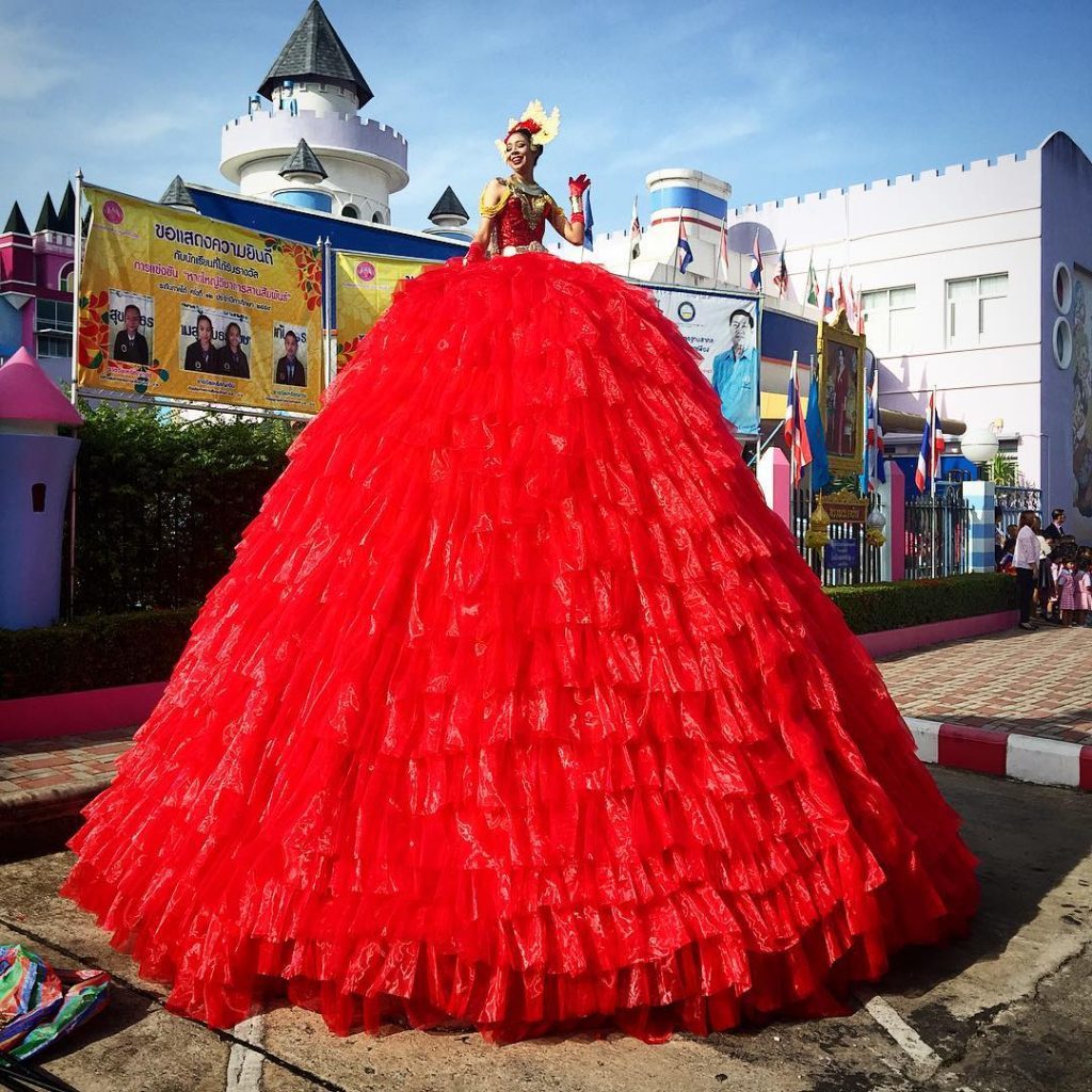 สีแดงแรงฤทธิ์ของจริง! มาดูกระโปรงทรงสูงมาก ของขบวนพาเหรดสีแดง