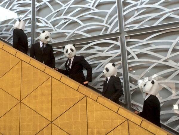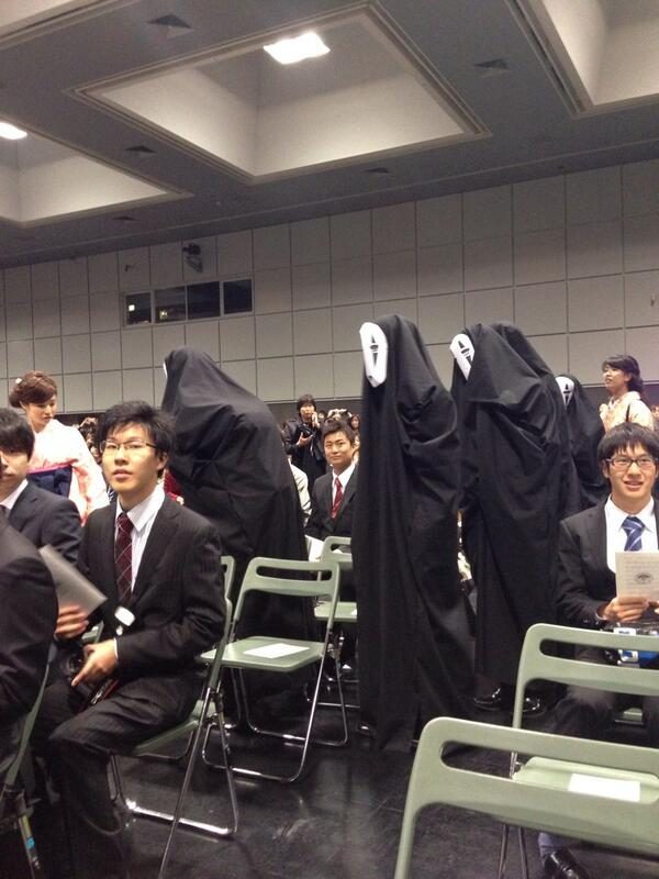 ใส่ชุดสูทกันมาอย่างเท่ แต่เอ๊ะ!!! ที่เด่นกว่าก็คงหนีไม่พ้นหน้ากากที่ใส่มาด้วย