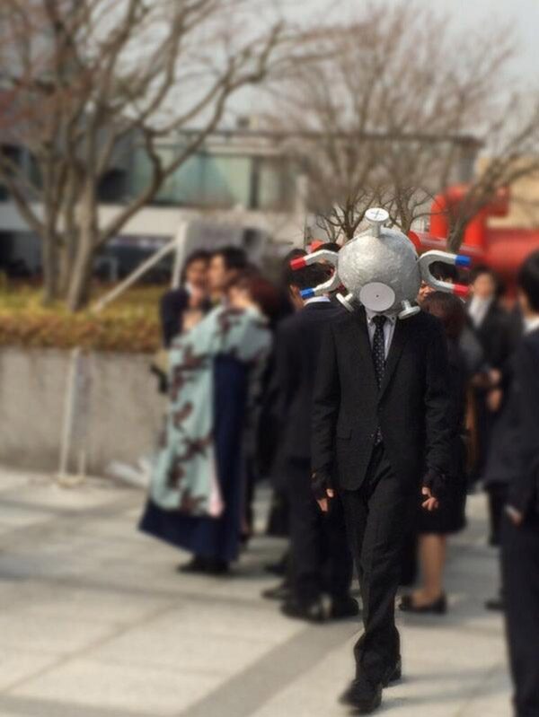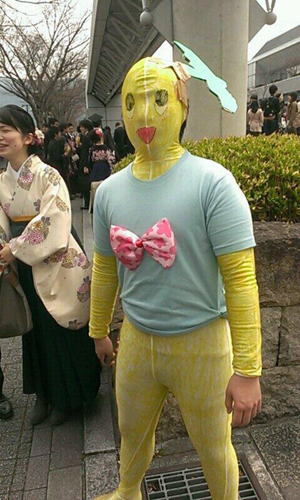 แล้วด้วยความที่มหาวิทยาลัยญี่ปุ่นไม่มีเครื่องแบบนักศึกษา ดังนั้นก็ไม่ได้มีการกำหนดอย่างตายตัวว่าต้องใส่ชุดอะไรในวันรับปริญญา แต่ที่นิยมกันส่วนมากในหมู่นักศึกษาชายก็จะเป็นชุดสูท ส่วนนักศึกษาหญิงก็จะใส่ชุดฮาคามะกันเป็นส่วนมาก แต่ก็จะมีนักศึกษาที่มีไอเดียการแต่งตัวที่ไม่ธรรมดา แหวกแนว ไม่เหมือนใคร ทั้งแต่งตัวเป็นเหล่าซุปเปอร์ฮีโร่ ตัวการ์ตูน หรือแม้แต่แต่งเป็นมนุษย์ต่างดาวมาก็มีนะ ไปดูกันค่ะว่า พวกเขาแต่งกายอย่างไรไปรับปริญญา