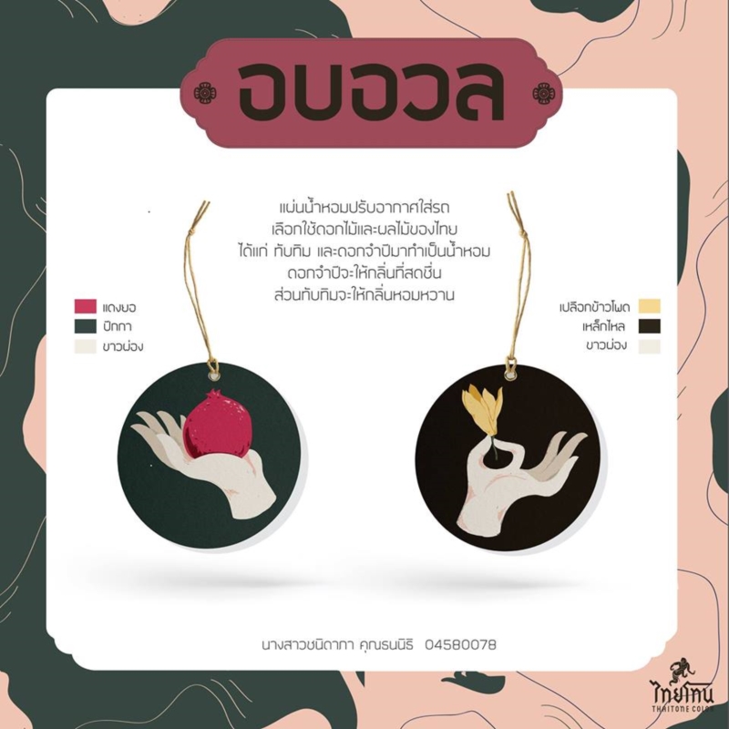 ผลงานการออกแบบเจ๋งๆ โดยใช้โทนสีแบบไทยๆ ต่อไปนี้เป็นของ นักศึกษาชั้นปีที่ 2 Visual Communication art Silpakorn 2560 โดยมีหัวข้อการออกแบบผลิตภัณฑ์คือ แรงบันดาลใจจากสี “ไทยโทน” ในวิชา usage of colors ภาควิชาออกแบบนิเทศศิลป์ คณะมัณฑนศิลป์ มหาวิทยาลัยศิลปากร อาจารย์ผู้สอนคือ ผศ.โชติวัฒน์ ปุณโณปถัมภ์ และ อ.ไพโรจน์ พิทยเมธี โดยผลงานทั้งหมด ก็มีหลากหลายประเภท อาทิ เครื่องสำอาง ของใช้ ของกิน เป็นต้น เห็นแล้วต้องบอกเลยว่าโทนสีแบบไทยๆ กับไอเดียของน้องๆ นักศึกษา ผสมผสานผลิตภัณฑ์ออกมาแล้วดูสวยงามเก๋ไก๋น่าใช้มากๆ อนาคตหวังว่าจะได้เห็นผลงานดีๆ แบบนี้ผลิตออกมาให้ทุกคนได้ใช้กันนะคะ
