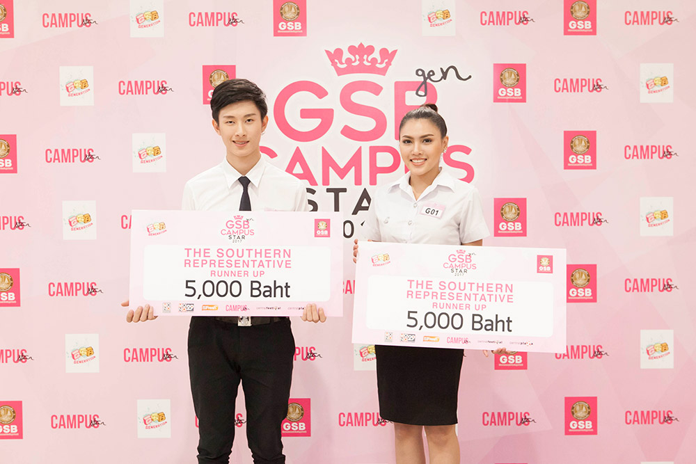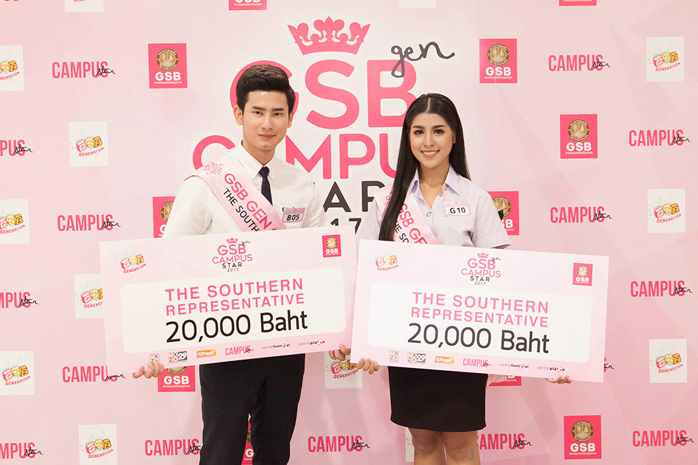 ประกาศผลออกมาแล้ว สำหรับผู้ชนะการประกวด GSB Gen Campus Star รอบภาคใต้ ประจำปี 2560 ซึ่งได้ทำการประกวดผ่านพ้นไปเป็นที่เรียบร้อยแล้ว เมื่อวันที่ 27 สิงหาคม 2560 ณ ศูนย์การค้า เซ็นทรัลเฟสติวัล หาดใหญ่ ที่ผ่านมา โดยมีผู้ที่ได้รับรางวัลชมเชยประจำภาคใต้จำนวน 2 คน และผู้ชนะเลิศการประกวด ตัวแทนภาคใต้ ที่จะไปทำการประกวดต่อไปในระดับประเทศ จำนวน 4 คน ดังนี้