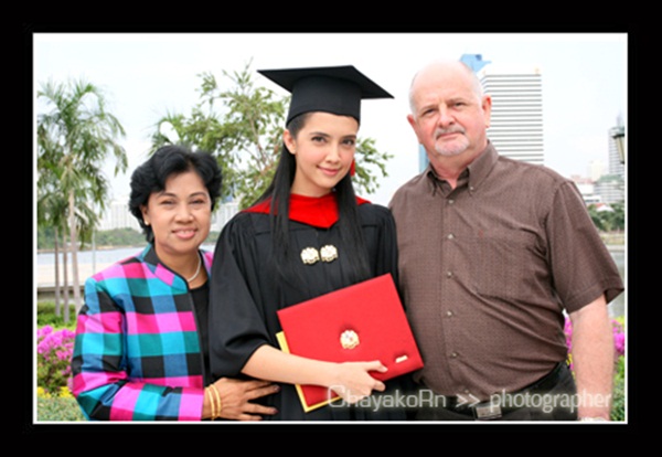 ซาร่า เล็กจ์ และคุณพ่อ ในงานรับปริญญา มหาวิทยาลัยอัสสัมชัญ