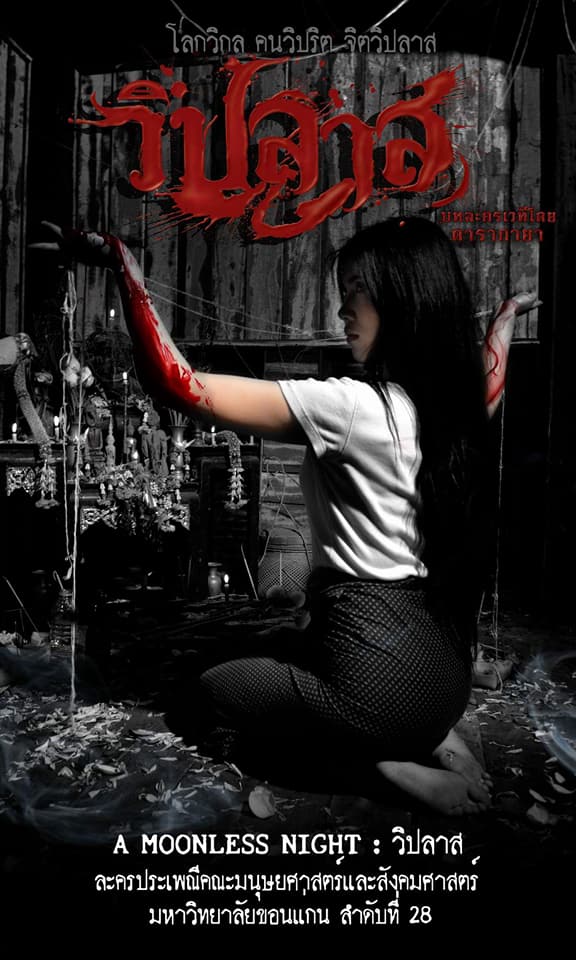 ซึ่งละครเวทีเรื่อง “วิปลาส A Moonless Night ละครเวทีลำดับที่ 28” ถูกสร้างขึ้นโดยนักศึกษา กาสะลองการละคร คณะมนุษยศาสตร์และสังคมศาสตร์ มหาวิทยาลัยขอนแก่น ในปี 2558 ซึ่งประพันธ์โดย พี่วิสกี้ เลอ ฟองเบียร์ (ผู้ประพันธ์ละครชื่อดัง) ร่วมกับทีมดารากายา หลังจากที่ได้ปล่อยทีเซอร์ โปสเตอร์โปรโมท และทำการแสดงออกมานั้น ก็ได้รับกระแสตอบรับจากผู้ชมมากมาย ถึงความหลอนและน่ากลัวของละครเวทีเรื่องนี้ ซึ่งในวันนี้ แคมปัส-สตาร์ ก็มีฉากที่ถูกกล่าวถึงของละครเวทีเรื่อง วิปลาส A Moonless Night ละครเวทีลำดับที่ 28 มาฝากกันด้วย ขอบอกเลยว่า.. อย่าดูคนเดียวเด็ดขาดไม่งั้น คุณได้หลอนจนนอนไม่หลับแน่นอน