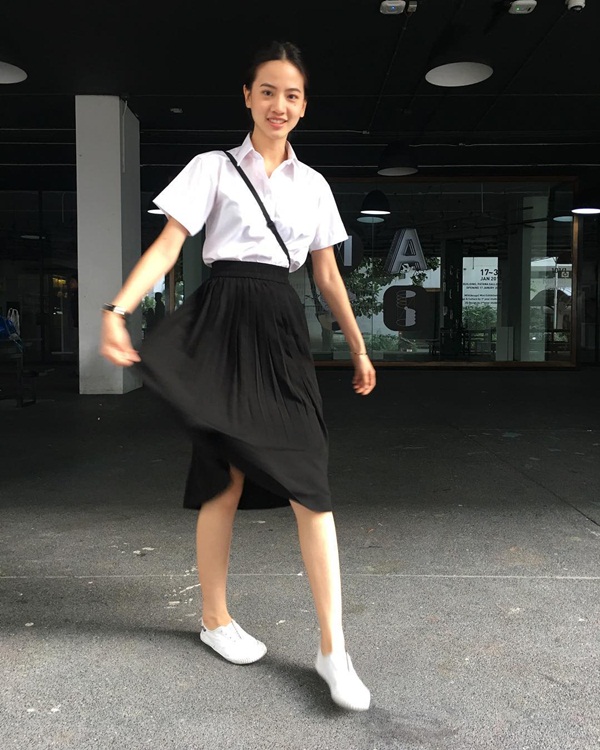 ท่าโพสต์ก็จะเก๋ๆ หน่อย แคร์ในชุดนักศึกษา