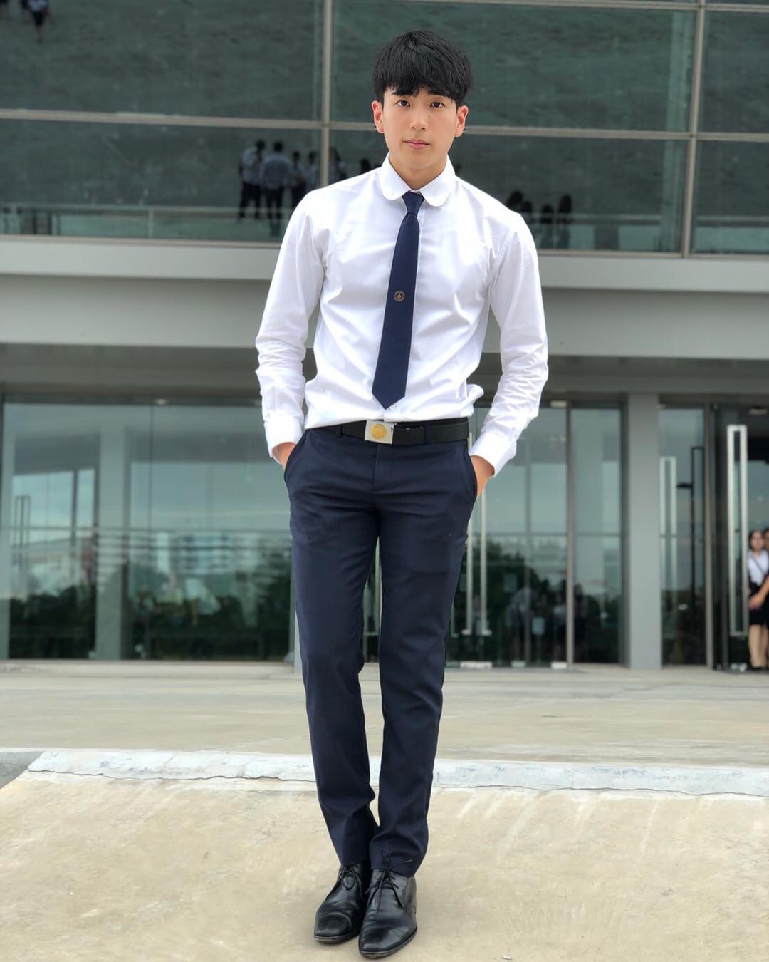 หนุ่มนน ชานน ในชุดนักเรียนโรงเรียนกรุงเทพคริสเตียนวิทยาลัย