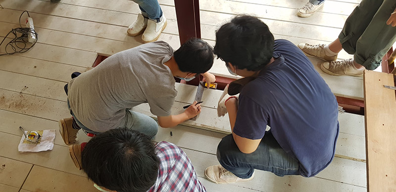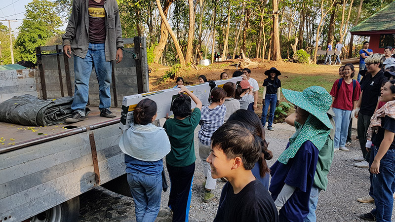ปรัชกร วันทา นักศึกษาชั้นปีที่ 3 หลักสูตรวิทยาศาสตรบัณฑิต สาขาวิชาสถาปัตยกรรม มหาวิทยาลัยเชียงใหม่ และประธานค่ายให้ ที่เข้าร่วมกิจกรรมออกแบบและปรับปรุงศาลาอเนกประสงค์ เผยถึงกิจกรรมนี้ว่า “เป็นหนึ่งในกิจกรรมของโครงการฝึกงานก่อสร้าง ทางสถาปัตยกรรม ภาคฤดูร้อน ภายใต้คอนเซ็ปต์ “ค่ายให้” คือ นำองค์ความรู้จากการเรียนในวิชาชีพสถาปัตยกรรม มาปลูกสิ่งก่อสร้าง เพื่อเป็นสาธารณประโยชน์แก่สังคม