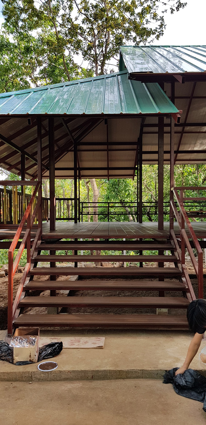 สำหรับการปรับปรุงศาลาอเนกประสงค์ ศูนย์ศึกษาธรรมชาติและสัตว์ป่าเชิงดอยสุเทพ ต.สุเทพ อ.เมือง จ.เชียงใหม่ ออกแบบเน้นความเรียบง่าย และโปร่งโล่ง รวมทั้งเสริมความแข็งแรงทนทานด้วยโครงสร้างเหล็ก พร้อมมุงหลังคาด้วยสังกะสีเคลือบสีกันความร้อน และปูพื้นด้วยผลิตภัณฑ์ทดแทนไม้ คอนวูด หน้า 6 นิ้ว รุ่นทูอินวัน สีธรรมชาติ พื้นที่รวม 75 ตร.ม. ที่ให้ความรู้สึกกลมกลืนกับธรรมชาติรอบตัวได้เป็นอย่างดี ซึ่งได้รับการสนับสนุนผลิตภัณฑ์ จากพี่ๆ บริษัท คอนวูด จำกัด”
