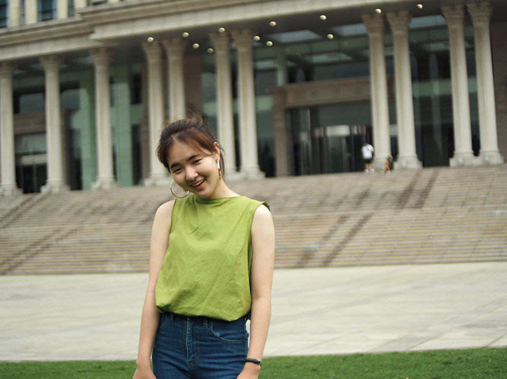 นางสาวณิชกมล ส่งศรีมณีกุล หรือ บิ้ว นักศึกษาชั้นปีที่ 4 หลักสูตรจีนศึกษา วิทยาลัยนานาชาติปรีดี พนมยงค์ มหาวิทยาลัยธรรมศาสตร์ (PBIC) กล่าวว่า … จากการได้มีโอกาสเป็นนักศึกษาแลกเปลี่ยนที่มหาวิทยาลัยฟู่ตั้น (Fudan University) เมืองเซี่ยงไฮ้ ประเทศจีน ซึ่งเป็นมหาวิทยาลัยชั้นนำระดับต้นๆ ของจีน ทำให้มีโอกาสพัฒนาความสามารถในการใช้ภาษาจีนอย่างมาก เนื่องจากมีการเรียนการสอนทางด้านภาษา โดยเฉพาะทักษะด้านการอ่านและการเขียนที่เข้มข้นกว่าที่ไทยอย่างมาก ในส่วนของทักษะการฟัง พูด ก็ได้ใช้เป็นประจำจากการเรียน และใช้ชีวิตอยู่ในจีนร่วม 6 เดือน ทำให้รู้ว่า หลังจากได้มาเรียนที่จีน ทำให้ความสามารถในด้านภาษาของตนเอง พัฒนาขึ้นมากอย่างเห็นได้ชัด