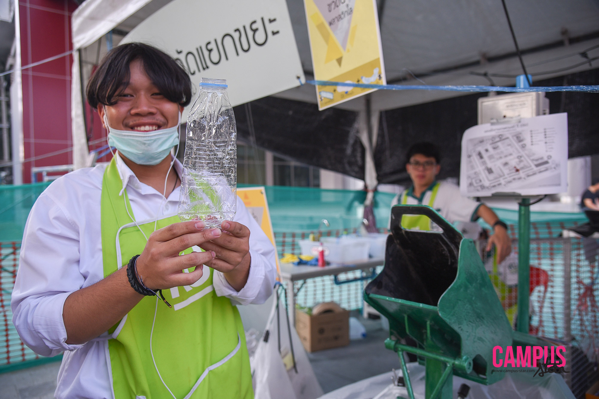 และทางมหาวิทยาลัยจะร่วมรณรงค์อีกแรง ด้วยการนำแก้วกระดาษเคลือบ BioPBS ที่ใช้แล้ว นำกลับมาเจาะรูใส่กระถางต้นกล้า เช่น พริก มะเขือ เพื่อเป็นรางวัลให้กับผู้ที่เดินซุ้มจนครบกลับบ้านไปปลูกทั้งแก้วได้เลย เพราะเมื่อลงดินแล้วก็จะสลายกลายเป็นปุ๋ยได้เอง นับเป็นนวัตกรรมการใช้บรรจุภัณฑ์พลาสติกชีวภาพอย่างยั่งยืน / www.pttgcgroup.com