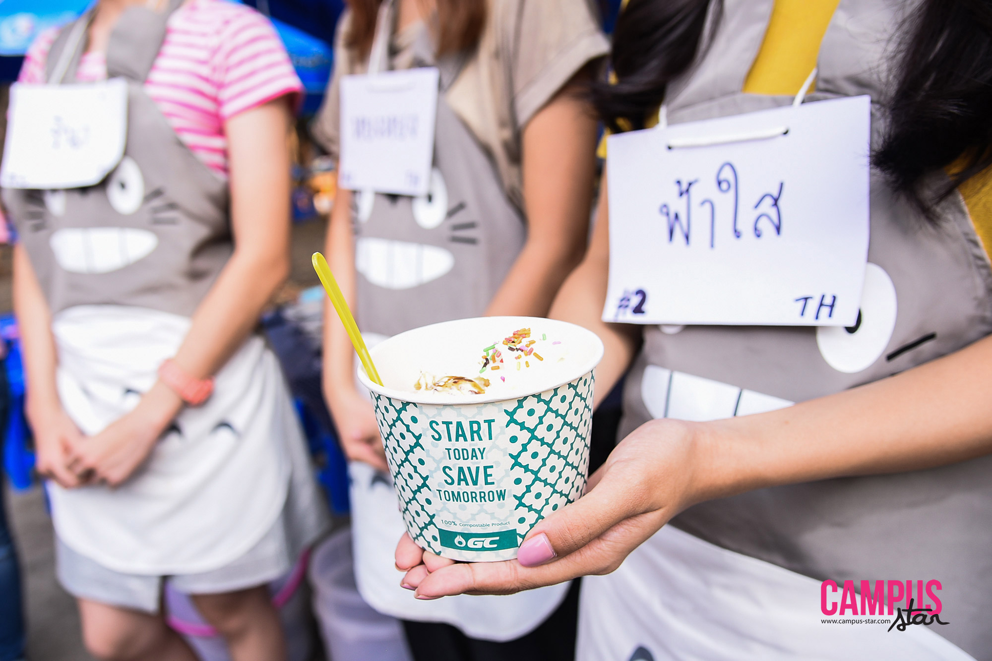 ซึ่งการริเริ่มใส่ใจสิ่งแวดล้อมของมหาวิทยาลัยเกษตรศาสตร์ในครั้งนี้ สอดรับกับผลิตภัณฑ์ของ GC เป็นอย่างดี ซึ่งทาง GC ได้มีการสนับสนุนบรรจุภัณฑ์พลาสติกชีวภาพ ที่สามารถใช้แล้วทิ้งได้เลยไม่เป็นภาระต่อสังคม อย่างภาชนะกระดาษเคลือบพลาสติก BioPBS ที่สามารถย่อยสลายได้เองตามธรรมชาติ เป็นมิตรกับสิ่งแวดล้อม ให้บูธของนิสิตได้นำไปใช้