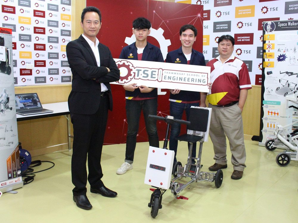 เริ่มจากผลงานของนักศึกษาหลักสูตรวิศวกรรมเครื่องกล ที่วิเคราะห์แนวโน้มความต้องการของตลาดในประเทศ เกี่ยวกับสิ่งของเครื่องใช้ที่มีความจำเป็นในสังคมผู้สูงอายุ โดยได้พัฒนาพาหนะขนาดเล็กพกพาง่าย “TU-V” ภายใต้การควบคุมของ รองศาสตราจารย์ ดร.ดุลยโชติ ชลศึกษ์ อาจารย์ภาควิชาวิศวกรรมเครื่องกล