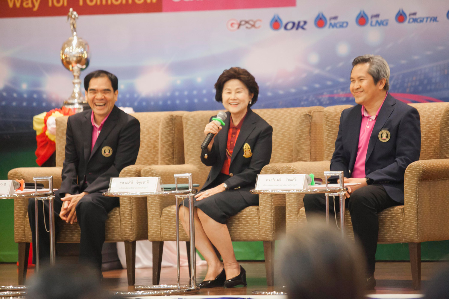 นายชาญศิลป์ ตรีนุชกร ประธานกรรมการดำเนินงานฝ่ายธรรมศาสตร์ ดร.ปรเมธี วิมลศิริ ประธานกรรมการดำเนินงานฝ่ายจุฬาฯ นายวัฒน์ชัย วิไลลักษณ์ ผู้จัดการทีมฟุตบอลธรรมศาสตร์ นางนวลพรรณ ล่ำซำ และนายสุทธิพันธ์ วรรณวินเวศร์ ผู้จัดการทีมฟุตบอลจุฬาฯ ได้ร่วมกันแถลงข่าวการจัดการแข่งขันฟุตบอลประเพณีธรรมศาสตร์-จุฬาฯ ครั้งที่ 7