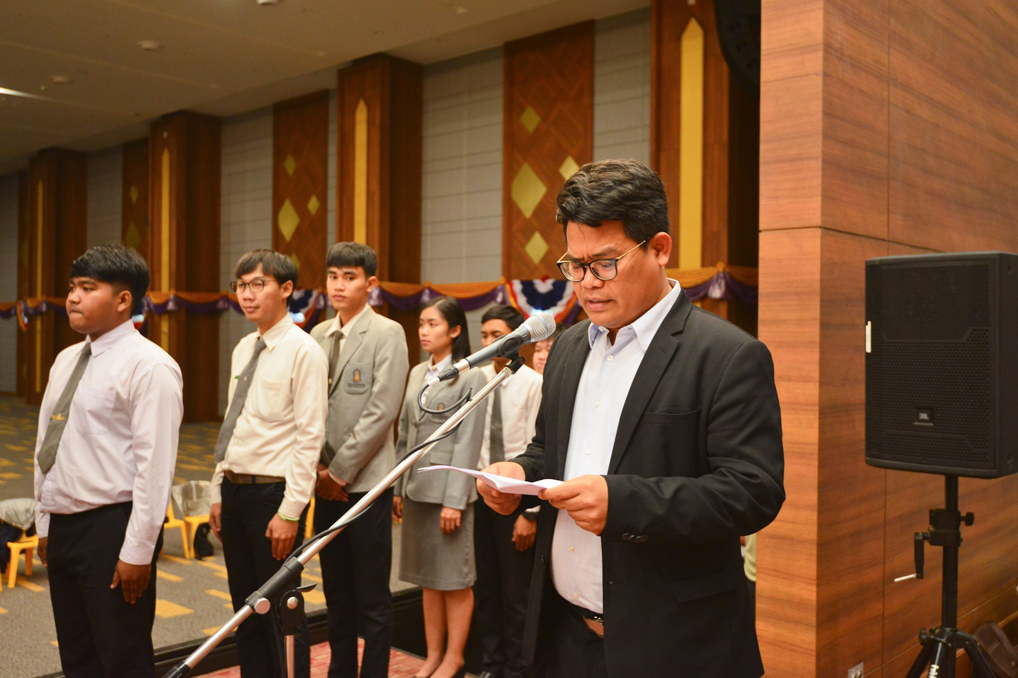 - ภาพบรรยากาศ พิธีบายศรีสู่ขวัญ ผูกแขนรับขวัญน้องใหม่ ม.มหาสารคาม