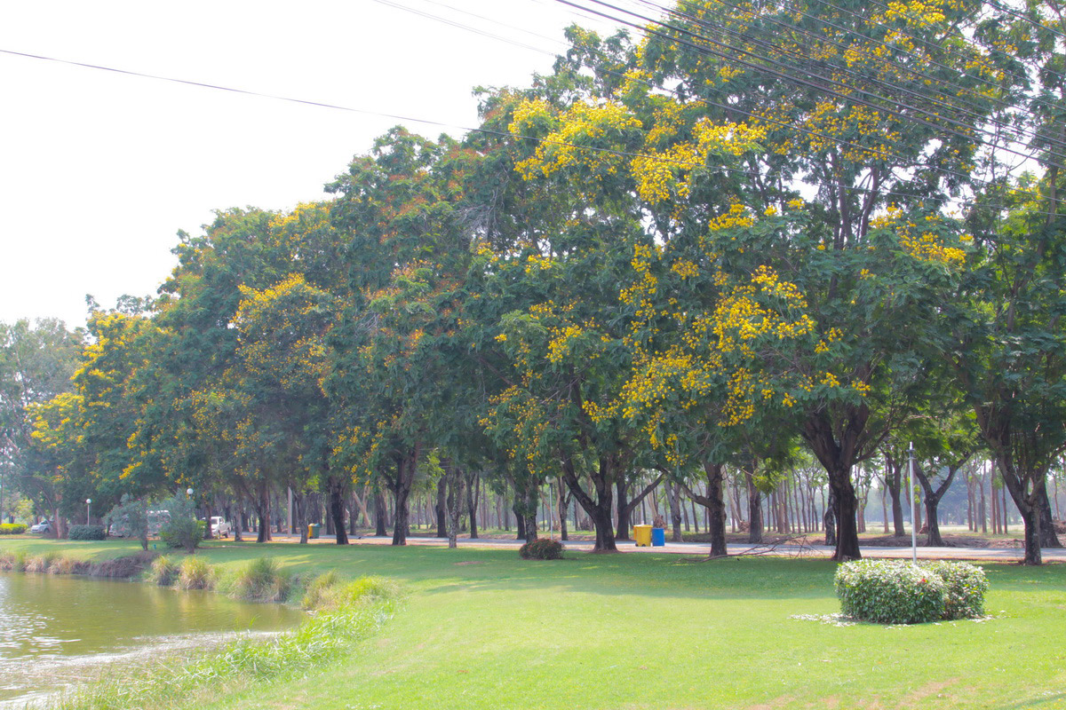 ริมถนนวัฒนาเสถียรสวัสดิ์ สวยแทบทุกต้นโดยเฉพาะหน้าร.ร.สาธิตฯ และบริเวณหน้าคณะวิศวกรรมศาสตร์ก่อนถึงคาวบอยแลนด์ ถ่ายภาพ วันที่ ๑๕ เมษายน ๒๕๖๐ เวลา ๐๖.๑๖ น.