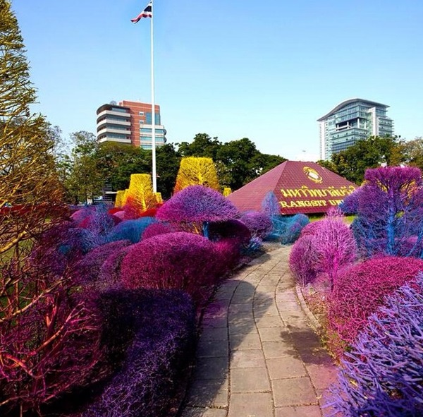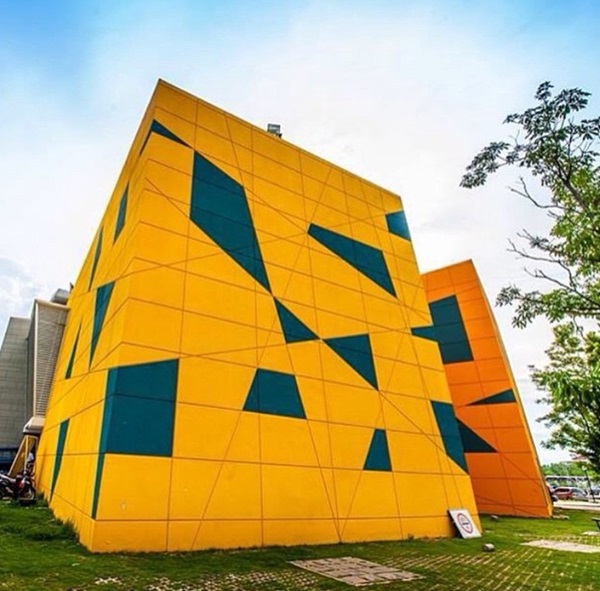 สีสดใส อาคารเรียน คณะนิเทศศาสตร์ มหาวิทยาลัยรังสิต